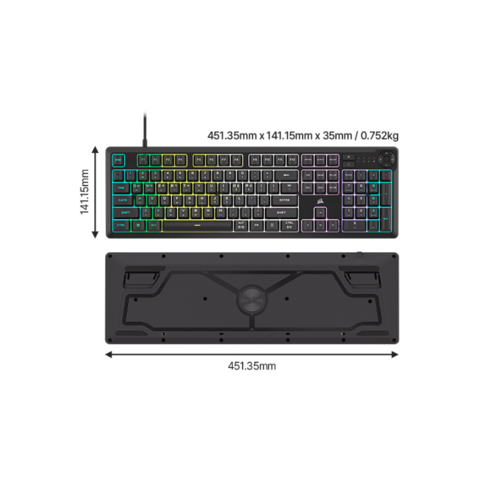 커세어 K55 Core RGB 게이밍 키보드는 처음 보았을 때 매우 깔끔하고 세련된 디자인이 눈에 들어왔어요! 전체적으로 블랙 색상에 RGB 조명이 더해져서, 어두운 방에서도 정말 멋진 분위기를 만들어 줘요. 특히 LED 조명은 다양한 색상으로 변환되니까, 기분에 맞춰 여러 가지 스타일로 설정할 수 있답니다~!