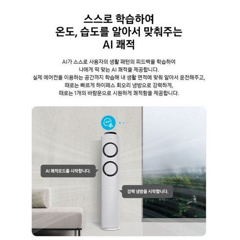 AI 기능은 정말 대단하다고 느꼈어요! 설정 온도를 기억해주고 그에 맞춰 자동으로 조절해 주니까 굉장히 편리하더라고요~ 예를 들어, 아침에는 좀 더 시원하게 하고 싶고 저녁에는 살짝 덜 시원하게 하고 싶은 날에는 AI가 알아서 해줘서 너무 좋았어요!