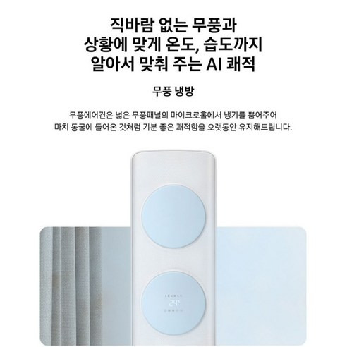 '무풍'이라는 이름에 걸맞게 이 에어컨은 시끄럽지 않아요! 바람 없이도 실내를 서늘하게 유지해주니 잠들기 전에도 방해받지 않고 쿨쿨 잘 수 있었답니다~ 사실 저는 바람 쐬면 감기에 잘 걸리는 편이라 이 기능이 특히 마음에 들었어요ㅎㅎ
